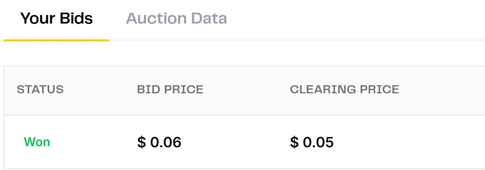 Figure 8: Zama Auction Manage Bids Phase (Source: Zama Auction Page)